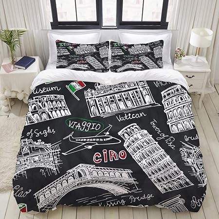 Asnivi Parure De Lit Adulte Housse De Couette Italie Celebre Point De Repere Modele Sans Couture Main 1 Housse De Couette 140 X 200cm 2 Taies D Oreillers 50 X 75cm Amazon Fr Cuisine Maison
