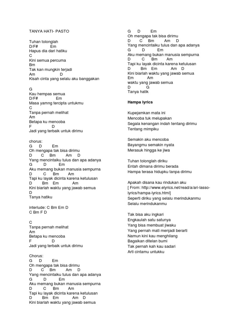 Lirik Dan Chord Gitar Lagu Tanya Hati Dari Pasto Download Lagu