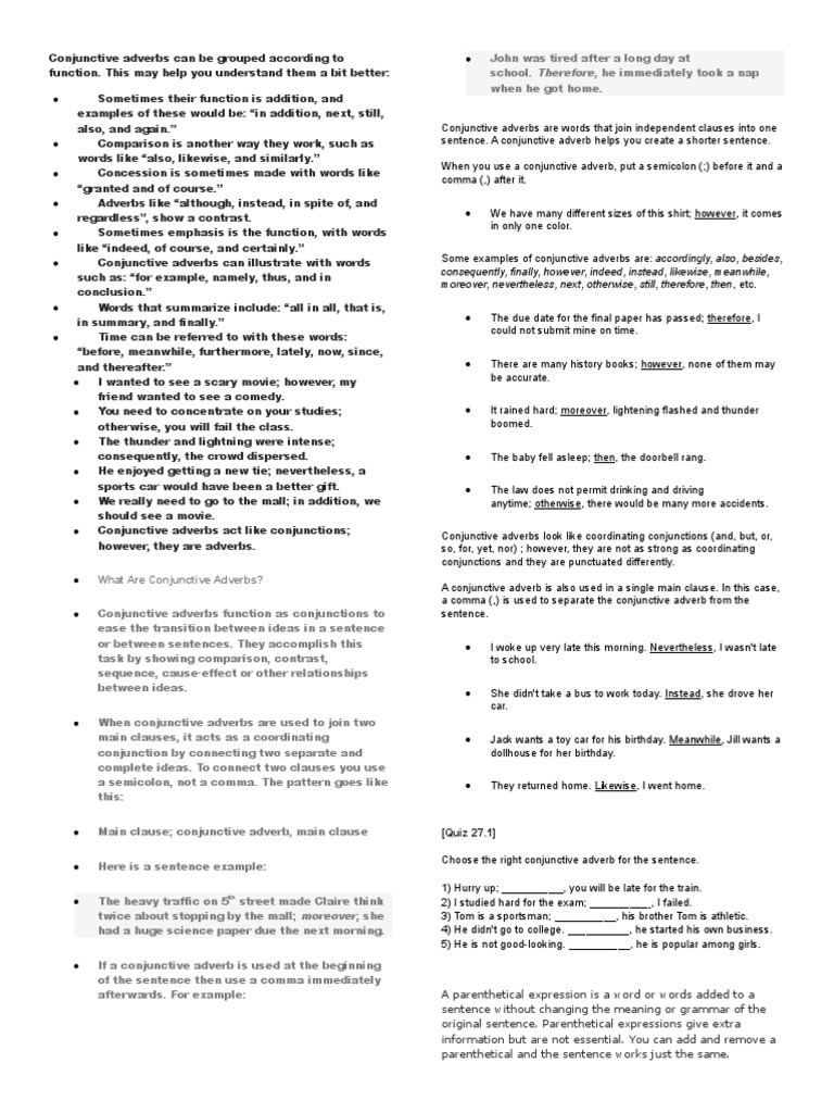 Conjunctive Adverbs Can Be Grouped According To Function Comma
